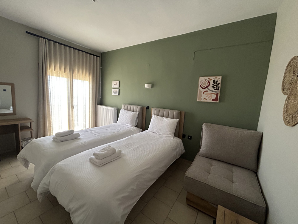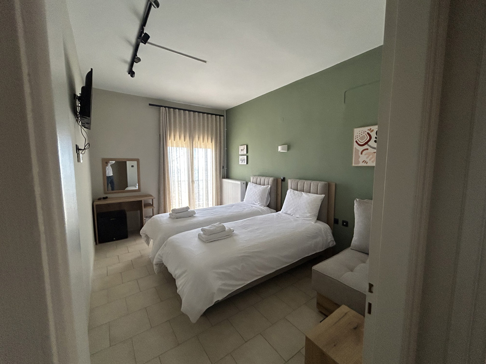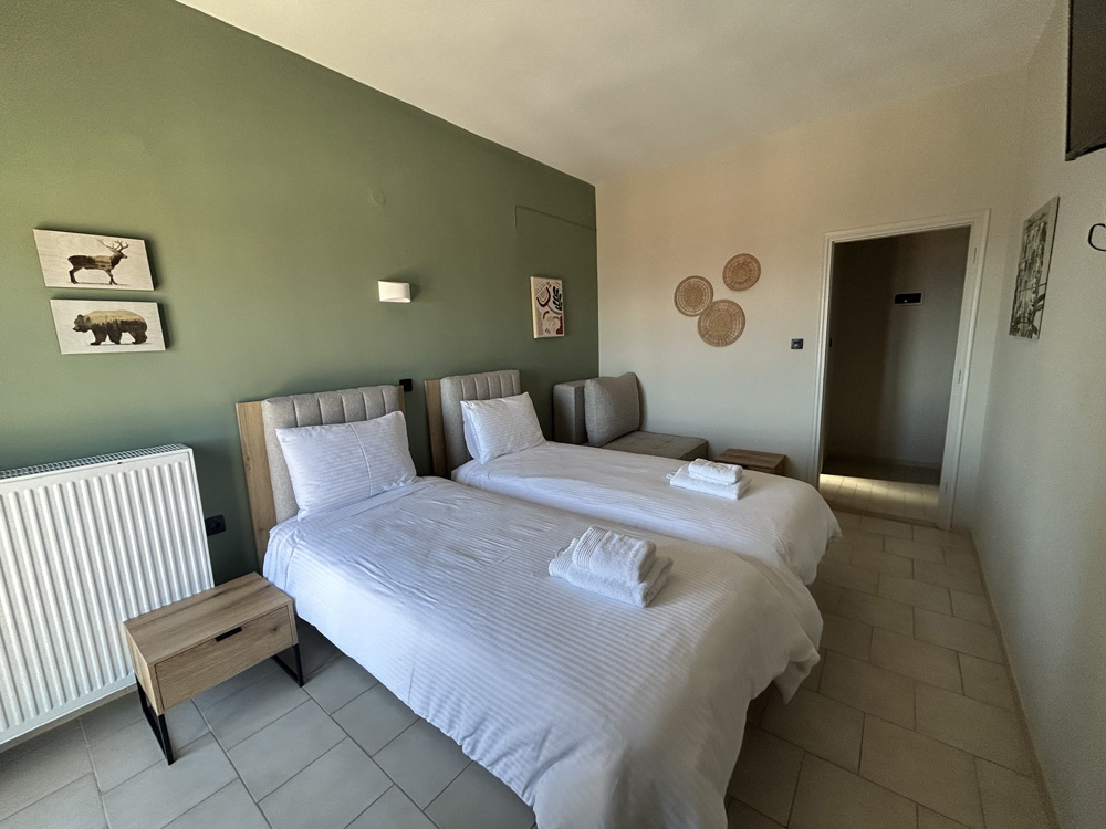 Το τρίκλινο δωμάτιο του Mamali Guesthouse είναι η ιδανική επιλογή για οικογένειες, παρέες ή επισκέπτες που θέλουν να μοιραστούν στιγμές ξεκούρασης και χαλάρωσης στην καρδιά της φύσης. Ζεστό και λειτουργικό, με άνετη διαρρύθμιση και θέα στο πράσινο τοπίο της Βερδικούσσας, προσφέρει μια εμπειρία διαμονής που συνδυάζει άνεση και ηρεμία.